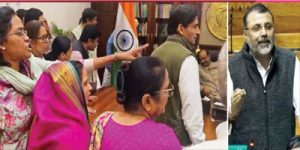 संसदेत महिला खासदार असण्याकडे दुर्लक्ष करून भाजपचे वादग्रस्त खासदार निशिकांत दुबे यांनी नेहरू-गांधी कुटुंबावर संतापजनक व घाणेरडी वक्तव्ये केली. त्यामुळे अर्थसंकल्पीय अधिवेशनात बुधवारी अभूतपूर्व गदारोळ झाला. राष्ट्रपतींच्या अभिभाषणावरील आभार प्रदर्शनाच्या प्रस्तावावर पंतप्रधान नरेंद्र मोदी संध्याकाळी 5 वाजता बोलणार होते. मात्र, विरोधी पक्षाच्या महिला खासदार पंतप्रधान मोदी यांच्या आसनाजवळ पोहोचल्या. या प्रचंड गदारोळामुळे कामकाज तहकूब झाले आणि यावेळी पंतप्रधानांचे संबोधन टळले. तर, या घटनेनंतर भाजपने विरोधकांवर ‘पंतप्रधानांवर हल्ल्याचा प्रयत्न’ केल्याचा आरोप केला.